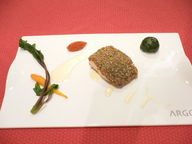 向日葵の種とピスタチオの衣をまとった天然真鯛 ヨーグルトソース