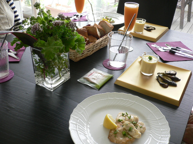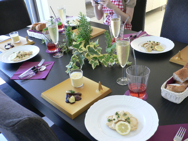 ●机に真菰筵(まこもむしろ)を敷きます