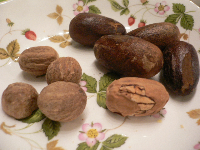 左の一回り小さいナツメグは私がイタリアで買ったもので比較のために並べてみました。