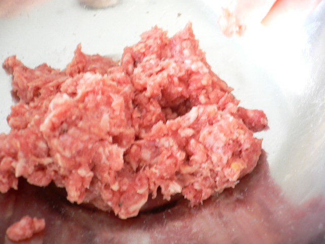 zucchini ufo6.JPG粗熱が取れたら、挽肉と混ぜて塩、胡椒、ナツメグで味付けしますpig
