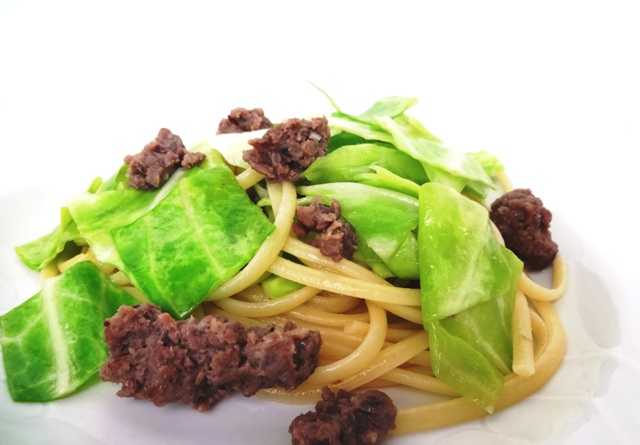 Spaghetti con cavolo e salsiccia fatta in casa