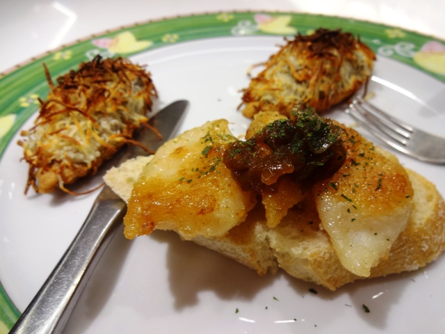 san sebastian32.jpg手前はTXOPITO(チョピート)小ヤリイカのソテーに甘味が出るまでじっくり炒めた飴色玉ねぎがのっています。