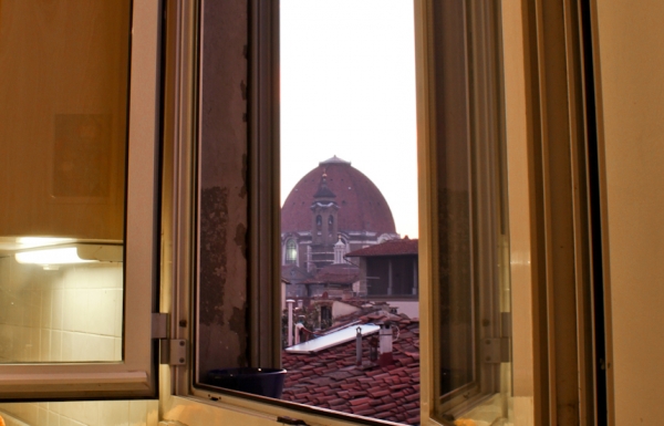 寝室の右の小窓からはフィレンツェ中央市場が、左の窓からはドゥオモもクーポラが見えます。
